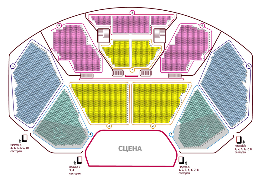 1, 4 сектор – 35.00*, 60.00, 70.00 рублей, 2, 3 сектор – 80.00, 90.00 рублей, 5, 10 сектор – 35.00, 50.00, 65.00 рублей, 6, 9 сектор – 45.00, 60.00 рублей,7 сектор – 65.00 рублей, 8 сектор – 35.00 рублей.