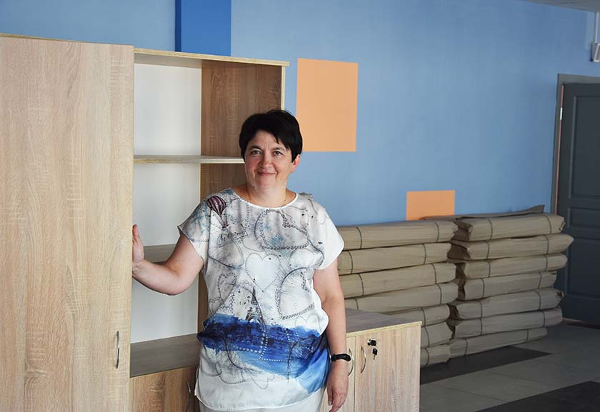 «У цяперашні час у кабінетах збіраецца і ўсталёўваецца вучэбная мэбля – парты, крэслы, шафы. Дарэчы, вучнёўскія парты і крэслы рэгулююцца па вышыні, адпавядаюць узроставым катэгорыям дзяцей і нормам СанПІНу. Напрыклад, шафы для вучняў пачатковых класаў з індывідуальнымі ячэйкамі, – адзначае Наталля Васільеўна. – Уся мэбля вытрымана ў адпаведных колеравых тонах, гэта дадасць класным памяшканням больш эстэтычнасці». Акрамя класных кабінетаў спецыяльнае абсталяванне будзе і ў медыцынскім кабінеце.