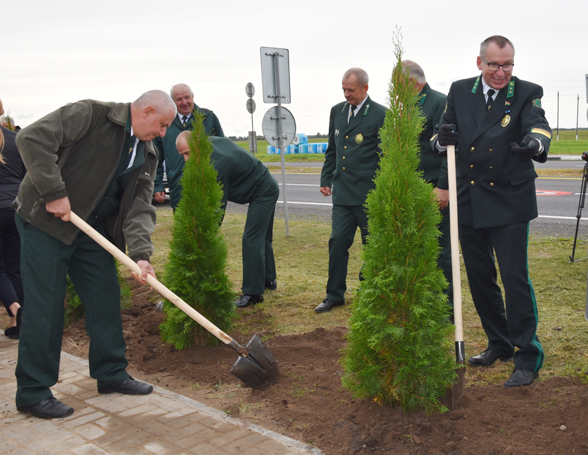 Вдоль дорожки, ведущей к композиции, участники мероприятия посадили аллею из туй.