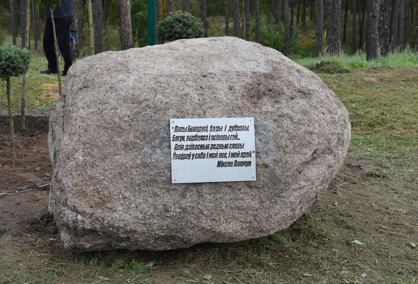 Был установлен камень с четверостишием Николая Лещуна, посвящённые лесу.