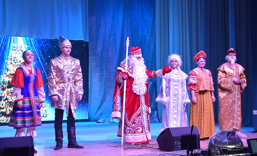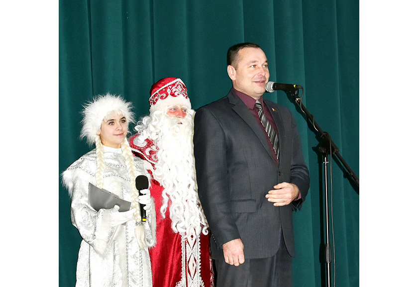 Спачатку дзяцей запрасілі на навагодняе прадстаўленне «У трыдзявятым царстве» – акунуцца ў яркі і чароўны свет казкі, цудаў і дзівосаў. Перад пачаткам дзеі ўсіх прысутных з надыходзячым Новым годам павіншаваў старшыня раённага Савета дэпутатаў Мікалай Будневіч.
