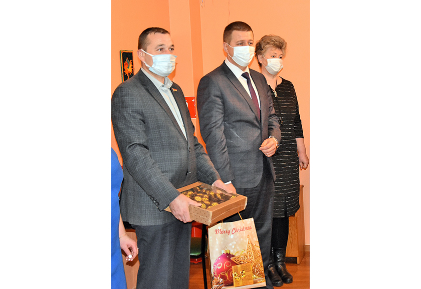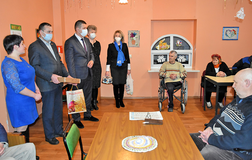Яны павіншавалі з Новым годам і Калядамі жыхароў аддзялення, уручылі ім падарункі і неабходныя рэчы, а таксама павіншавалі калектыў установы з прафесійным святам – Днём работнікаў сацыяльнай абароны.