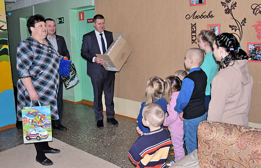 Хлопчыкі і дзяўчынкі былі вельмі рады гасцям. Сяргей Галынчык і Мікалай Будневіч павіншавалі іх з Новым годам і Калядамі, пажадалі не хварэць, быць паслухмянымі і каб абавязкова споўніліся іх самыя запаветныя жаданні.