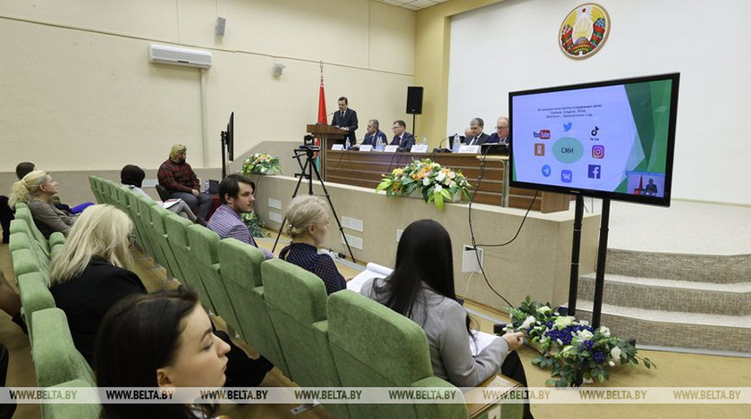 Сегодня проходит заседание коллегии Министерства информации по итогам работы отрасли в 2021 году и определению основных задач ведомства на 2022-й. Она проходит в комбинированном формате: офлайн — в Доме прессы в Минске, а представители регионов подключились к общению онлайн.-0-