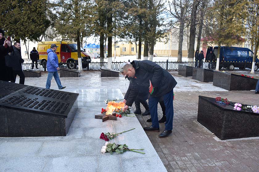 Пад гукі вайсковых маршаў калона з прадстаўнікоў улады, грамадскіх аб’яднанняў, арганізацый і прадпрыемстваў Шуміліншчыны, ветэранаў Узброеных Сіл прайшла па Алеі Герояў да брацкіх могілак.