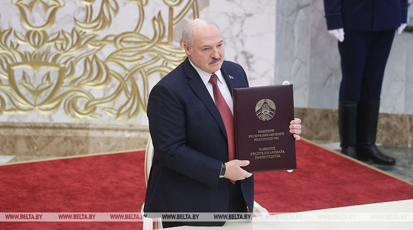 Александр Лукашенко заявил, что в условиях напряженной международной обстановки, угроз традиционному укладу жизни граждане сделали серьезный шаг на пути укрепления суверенитета страны. «Сделали его, опираясь на собственный опыт конституционного реформирования, беря под защиту исконные ценности, накопленные за многовековую историю белорусского народа. Народа, который в переломные моменты всегда делал выбор в пользу мира, созидания и укрепления основ нашей государственности», — подчеркнул глава государства.