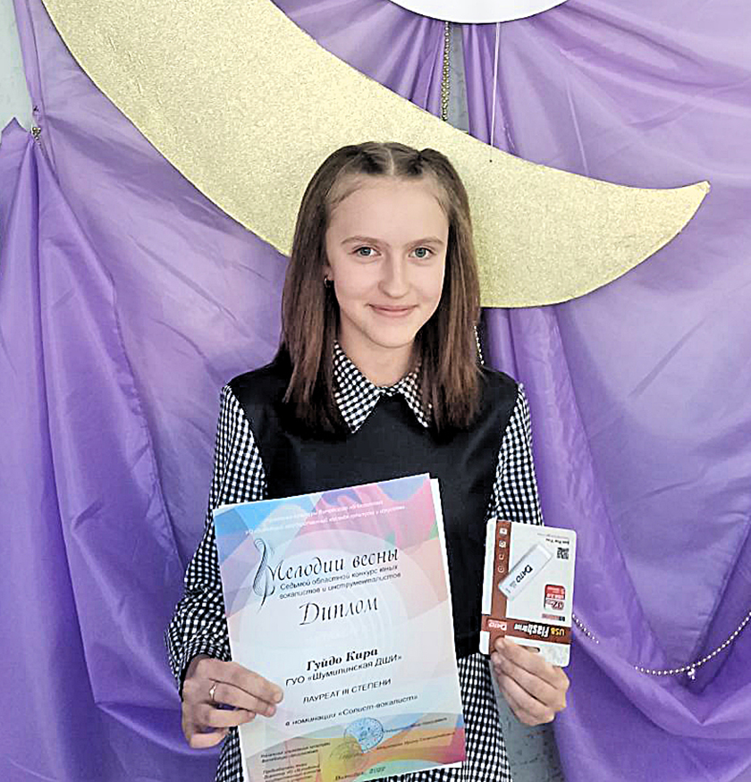 На вясенніх канікулах выхаванцы Шумілінскай дзіцячай школы мастацтваў Кіра Гуйдо (наст. Нэлі Жаваранкава), Соф’я Кучко і Кацярына Пусянкова (наст. Вольга Семчанка) прынялі ўдзел у абласным аглядзе-конкурсе «Мелодыі вясны».