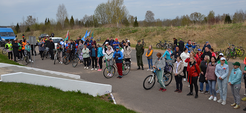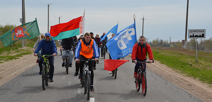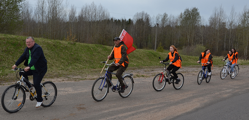 Перед началом велопробега. Велосипедисты из Шумилинской ПМК-70На центральной площади в г.п. ШумилиноПо дороге в ТропиноПрисоединился к велопробегу КУСХП «Сиротинский» Во время митинга на мемориальном комплексе в ТропиноВо время митинга на мемориальном комплексе в ТропиноПредседатель райсовета Николай Будневич и председатель районной организации десантников Александр Коржель на митингеСегодняшнее поколение помнит и чтит подвиг советских солдат