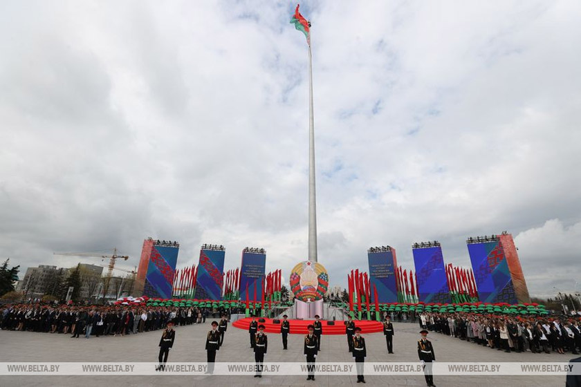 Он также напомнил о состоявшемся референдуме, во время которого были приняты поправки в Конституцию. «Герб, флаг являются неотъемлемой частью этой Конституции. Поэтому сегодня знаковый день, особый, который дает старт новому дыханию, доброй традиции, которая рождена в недрах нашей новой истории, — подчеркнул белорусский лидер. — Символы, которые олицетворяют наш суверенитет и национальное единство, перед нами».