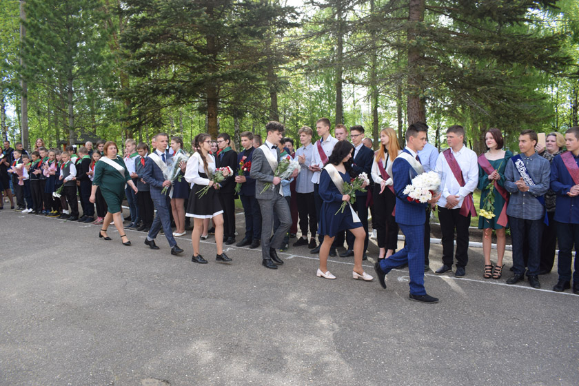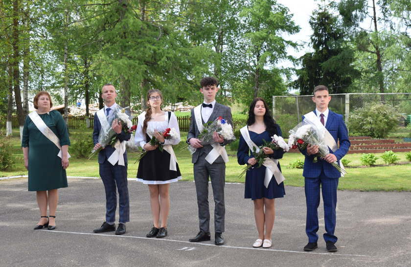 Як і належыць, на лінейцы гучалі слова-наказ ад класнага кіраўніка выпускнікоў Людмілы Мамойка і словы падзякі бацькам, педагогам і усім работнікам установы адукацыі ад адзінаццацікласнікаў. Былі кветкі любімым педагогам і школьны вальс.