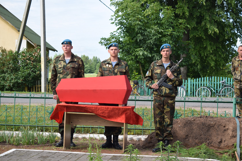 Залпы дэсантнікаў 103-й мабільнай брыгады. Хвіліна маўчання. Цішыня. Да брацкай магілы ўсклалі кветкі, вянкі і гірлянды. У імя памяці аб загінуўшых дзеці запусцілі ў неба белыя шары з жаўрукамі. У народзе кажуць, што душы загінуўшых за Айчыну салдат ператвараюцца ў белых жаўрукоў. І яны паляцелі ў нябёсы, каб нагадаць нам, як важна берагчы мір на зямлі.