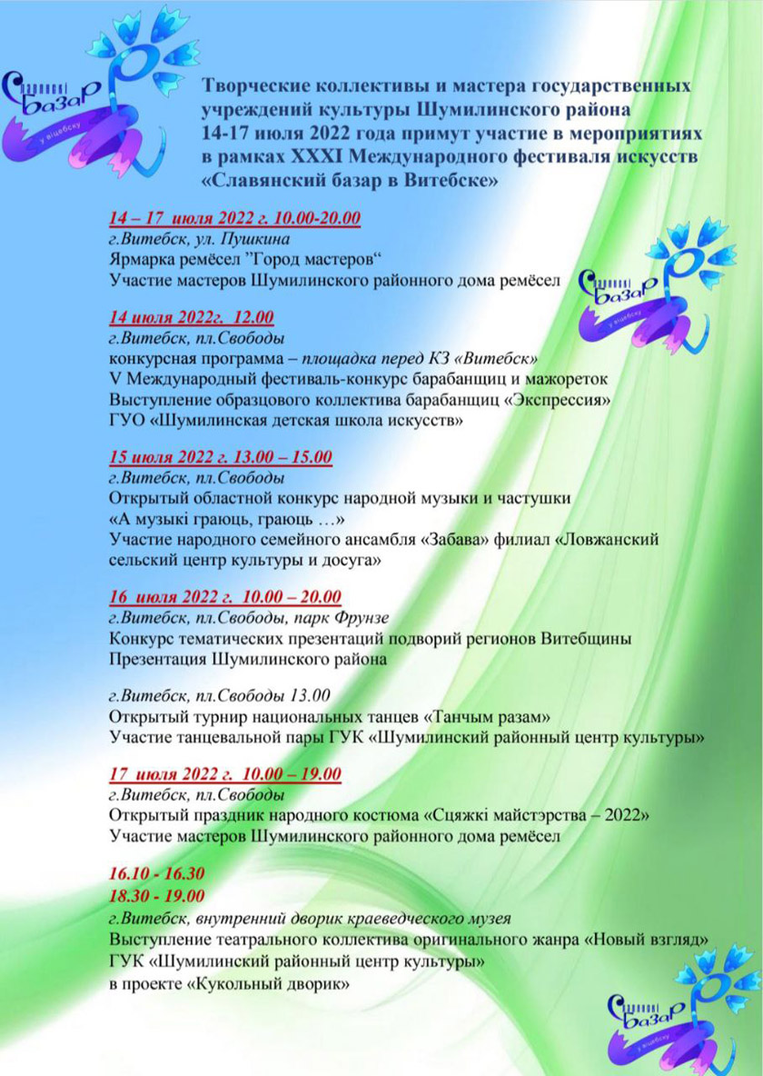 «Славянский базар в Витебске-2022». Где будут выступать шумилинские коллективы