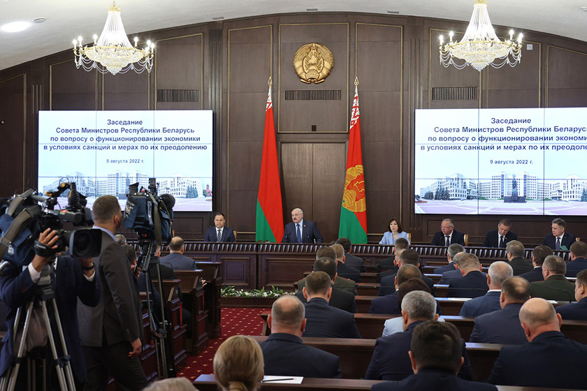Президент Беларуси Александр Лукашенко провел заседание Совета Министров о функционировании экономики в условиях санкций и мерах по их преодолению. В течение нескольких часов были заслушаны доклады не только Премьер-министра Романа Головченко, но и руководителей отраслей сельского хозяйства, промышленности, транспорта, строительства, калийной отрасли, банковско-финансовой сферы. Все основные тенденции изучены на основе данных статистики, а по итогам разговора Александр Лукашенко дал конкретные поручения по ряду направлений, передает БЕЛТА.