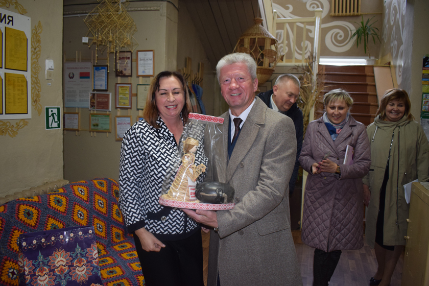 Анатоль Маркевіч пазнаёміўся з работай народных майстроў, з рознымі накірункамі дзейнасці ўстановы культуры. На памяць аб наведванні нашага раёна госцю быў уручаны сувенір, зроблены ў Доме рамёстваў.