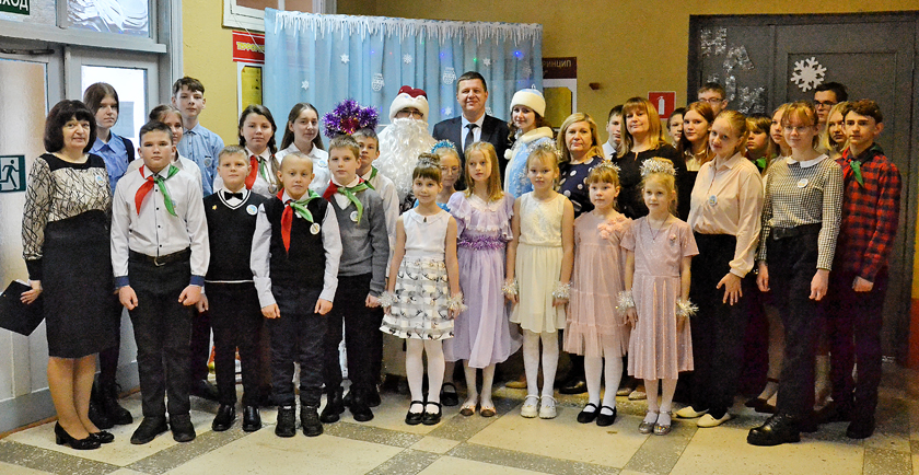 Танец снегавікоў, карагод з удзелам Дзеда Мароза і Снягуркі, з’яўленне сімвала надыходзячага 2023 года – Труса – усё стварала святочны настрой і выклікала радасныя ўсмешкі дзяцей і дарослых. Мікалай Будневіч павіншаваў школьнікаў са святам, адзначыў, што навагодняя дабрачынная акцыя праводзіцца для таго, каб кожнае дзіця не засталося без увагі і атрымала падарунак у самае чароўнае свята – Новы год. Ён пажадаў вучням добрых адзнак і жаданых падарункаў.