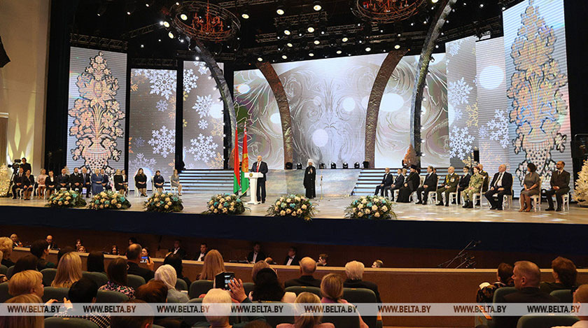 Глава государства отметил, что сегодняшний вечер является продолжением самого светлого, самого семейного и красивого праздника Рождества. «Премии, которые ежегодно вручаем в эти зимние дни, — дань исконным традициям, связывающим эпохи и поколения. Дань духовной силе белорусов — мудрых, трудолюбивых, любящих родную землю и почитающих предков», — сказал белорусский лидер.