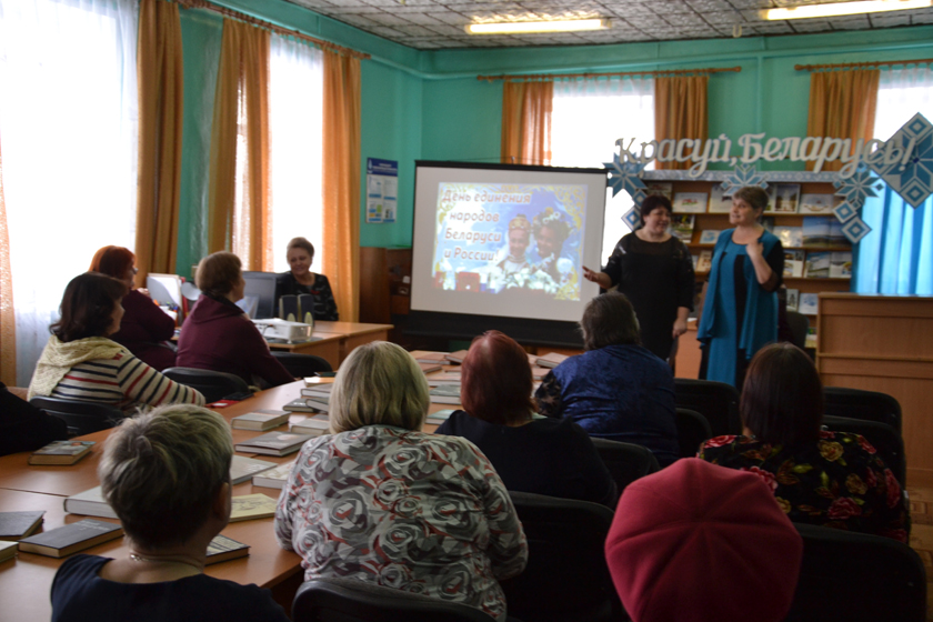 У чытальнай зале сабраліся актывісты грамадскіх арганізацый, жыхары раённага цэнтра. Супрацоўнікі бібліятэкі падрыхтавалі для іх цікавы расказ пра гісторыю фарміравання Саюзнай дзяржавы Беларусі і Расіі, пра агульны лёс двух народаў, якія маюць агульныя карані. Удзельнікі мерапрыемства адказвалі на пытанні віктарыны пра беларускія і расійскія гарады, што маюць аднолькавыя назвы. Да іх увагі быў прапанаваны расказ пра гістарычных дзеячаў, славутых асоб з сівой даўніны да нашага часу, якія нарадзіліся на беларускіх землях. Але ў свой час яны ўнеслі немалы ўклад у развіццё не толькі Беларусі, але і расійскай дзяржавы і грамадства, культуры і навукі.
