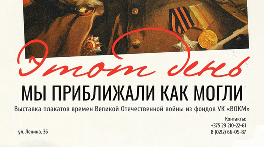 5 мая, Витебск /Корр. БЕЛТА/. Выставка плакатов времен Великой Отечественной войны «Этот день мы приближали как могли», посвященная Победе советского народа, откроется 5 мая в Витебском областном краеведческом музее. Об этом корреспонденту БЕЛТА сообщили в учреждении культуры.