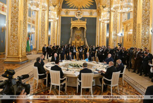 «Каждый год мы приходим на это священное место — к величественному монументу, увенчанному орденом Победы. Этот символ исторической памяти возвышается над городом-героем Минском, напоминая о подвиге, подобного которому не знает история человечества. Подвиге, который сегодня объединяет миллионы людей Европы и Азии — всех, кто сохранил в себе ген доблести и мужества предков, — отметил Виктор Хренин. — Мы, белорусы, гордимся каждым своим воином — от простого солдата до генерала, которые вместе с братскими народами выдержали удар гитлеровской Германии, разбили армию, мобилизованную со всей Западной Европы и вооруженную до зубов на деньги мировых магнатов».
