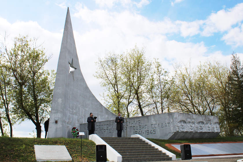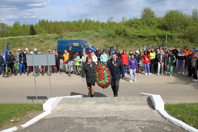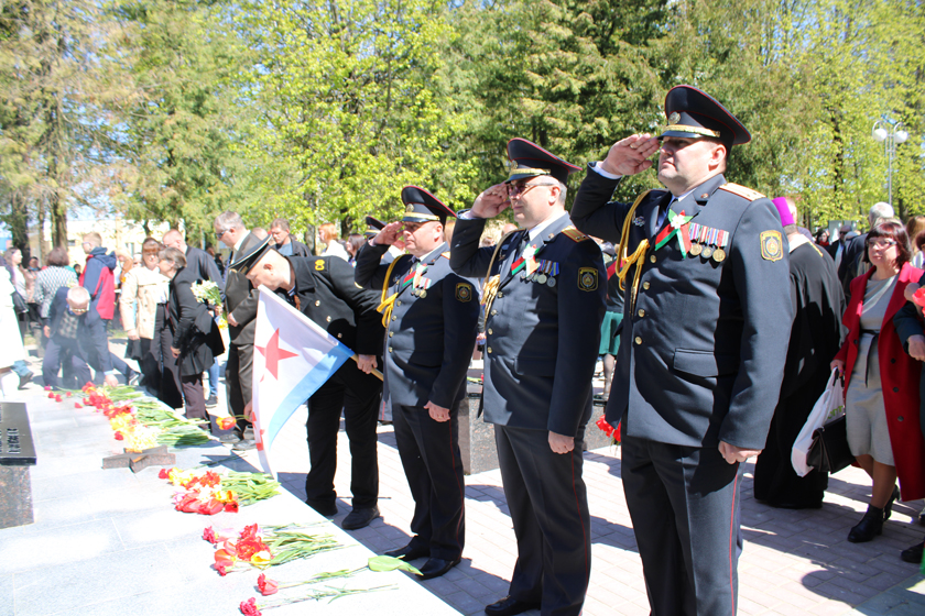 Удзельнікі мітынгу ўшанавалі хвілінай маўчання памяць савецкіх салдат, якія загінулі пры вызваленні нашага раёна, і ўсклалі да помніка на брацкіх могілках вянкі і кветкі.