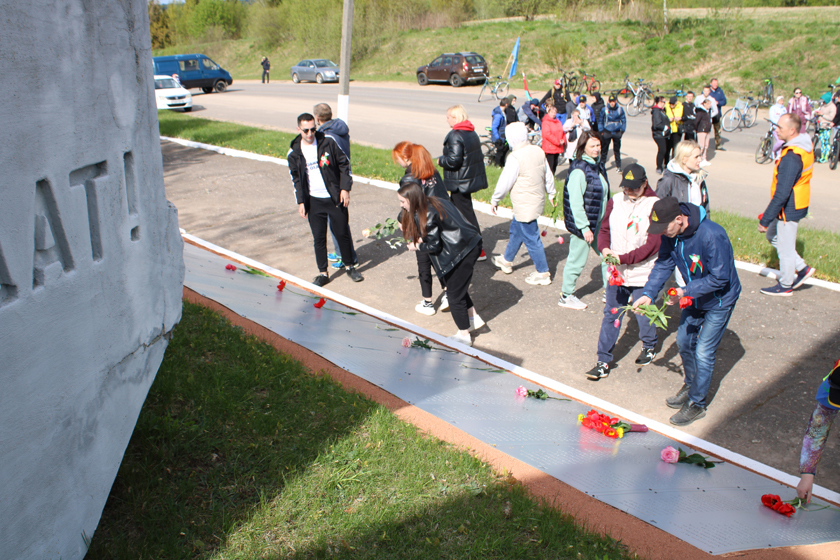 На мемарыяльным комплексе ў Тропіне прайшоў урачысты мітынг, удзел у якім прынялі старшыня райсавета дэпутатаў Мікалай Будневіч і намеснік старшыні райвыканкама старшыня раённай арганізацыі ГА «Белая Русь» Ірына Шалахава. Удзельнікі прабегу ўшанавалі памяць савецкіх воінаў хвілінай маўчання, усклалі да могілак вянкі і кветкі.