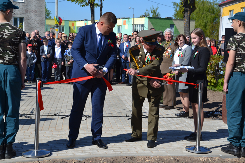 Ганаровае права перарэзаць чырвоную стужку прадастаўлена старшыні раённага выканаўчага камітэта Сяргею Галынчыку і старшыні раённай арганізацыі Беларускага Саюза афіцэраў Валерыю Жандараву.