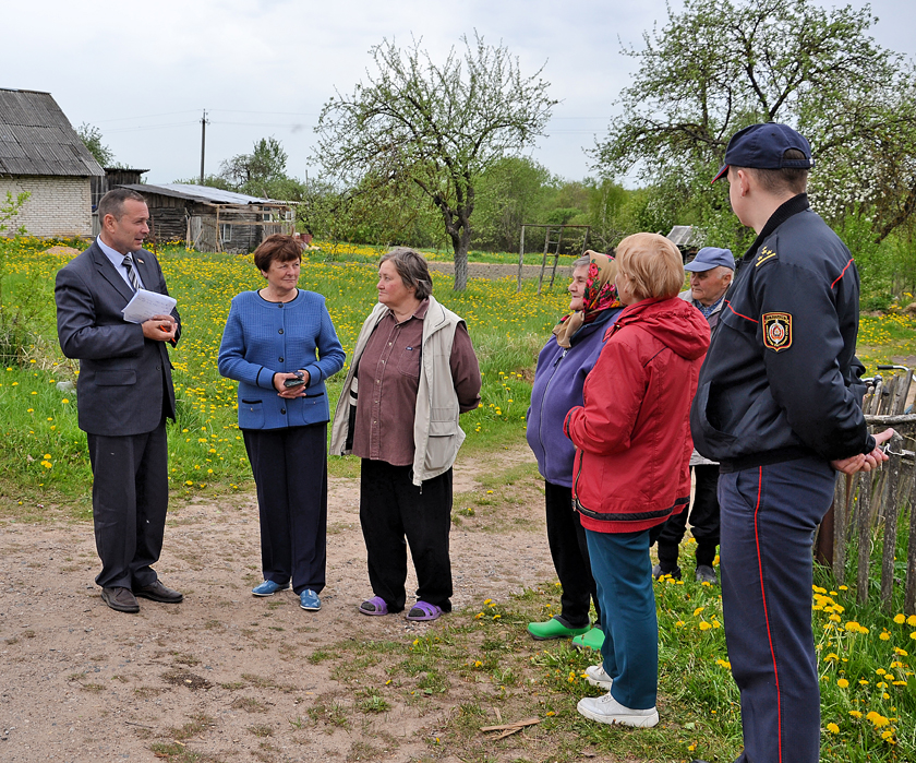 У сваю чаргу і ўдзельнікі рабочых груп выказвалі ў адрас вяскоўцаў свае просьбы і заўвагі – і наконт своечасовага добраўпарадкавання сядзіб, выканання правілаў пажарнай бяспекі пры спальванні смецця (абавязкова з вядром вады і пад наглядам), асцярожных зносін з незнаёмымі людзьмі (калі падазроны, адразу тэлефанаваць у міліцыю 102).