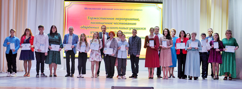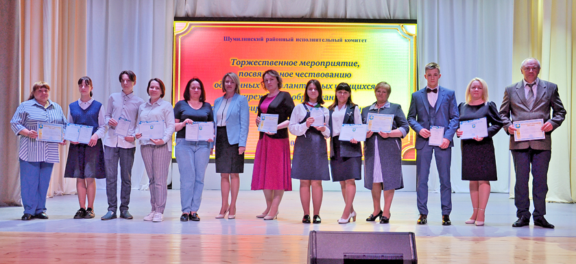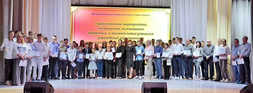 У пятніцу, 19 мая, у раённым цэнтры культуры прайшло ўрачыстае свята ўшанавання адоранай і таленавітай моладзі Шуміліншчыны, на якую былі запрошаны 73 вучні ўстаноў адукацыі раёна і спецыялізаваных вучэбна-спартыўных устаноў, іх педагогі і бацькі.