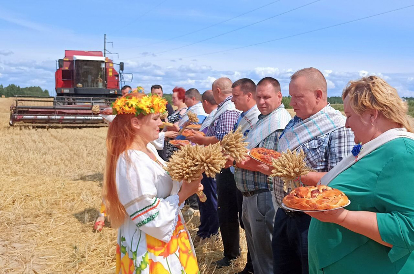 Адкрыў свята першы намеснік старшыні райвыканкама Уладзімір Пушноў. «Вырошчванне хлеба – вельмі цяжкая работа, – адзначыў Уладзімір Сяргеевіч. – Наша агульная мэта – убраць яго без страт, якасна і ў максімальна сціслыя тэрміны. Механізатары былі і застаюцца галоўнымі на хлебнай ніве. І ў першую чаргу ад іх залежыць ход жніва. Работа наперадзе чакаецца сур’ёзная – трэба ўбраць 10424 гектары зерневых. На жніве ў раёне будуць працаваць 33 камбайны».