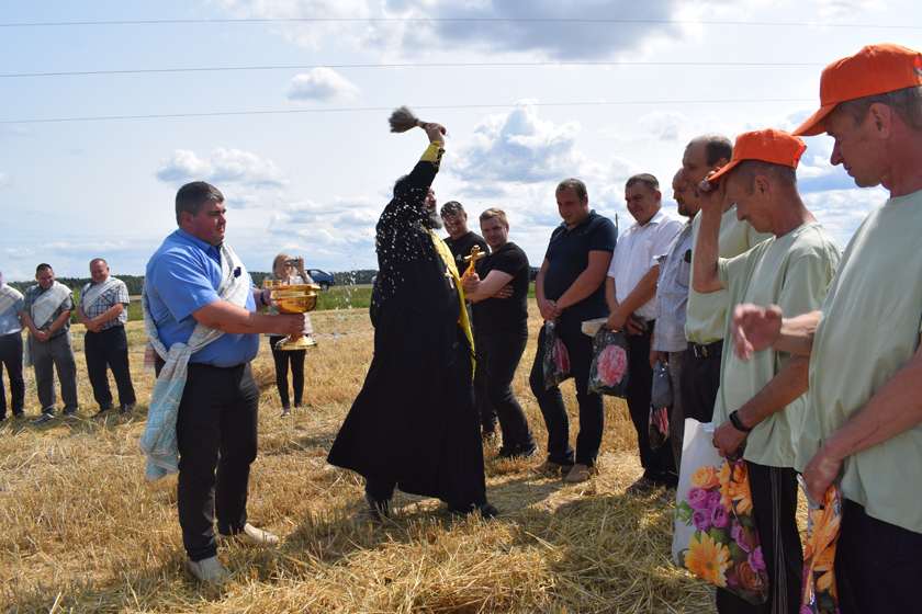 Хлебаробаў і тэхніку на добрую работу блаславіў настаяцель храма Прападобнага Ануфрыя Вялікага Уладзімір Пучынскі.