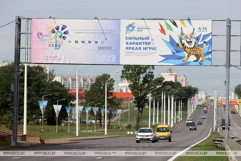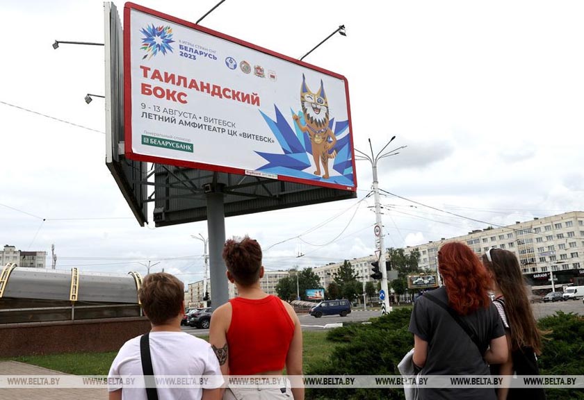 Тематическими баннерами украсили Витебск в преддверии II Игр стран СНГ, в Летнем амфитеатре с 9 по 13 августа пройдут соревнования по таиландскому боксу.