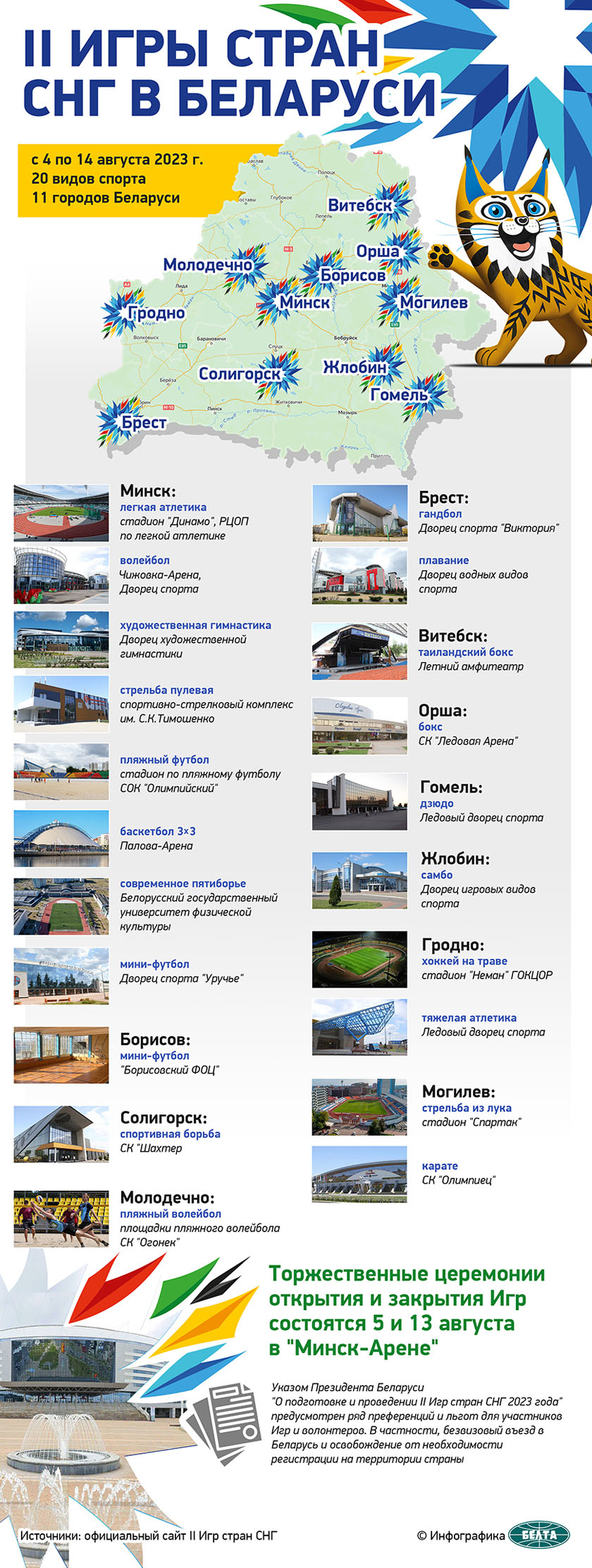 Соревнования пройдут по 20 видам спорта в 11 городах Беларуси.