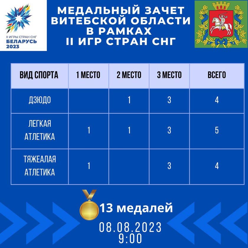 II Игры стран СНГ: на счету спортсменов из Витебской области 13 медалей