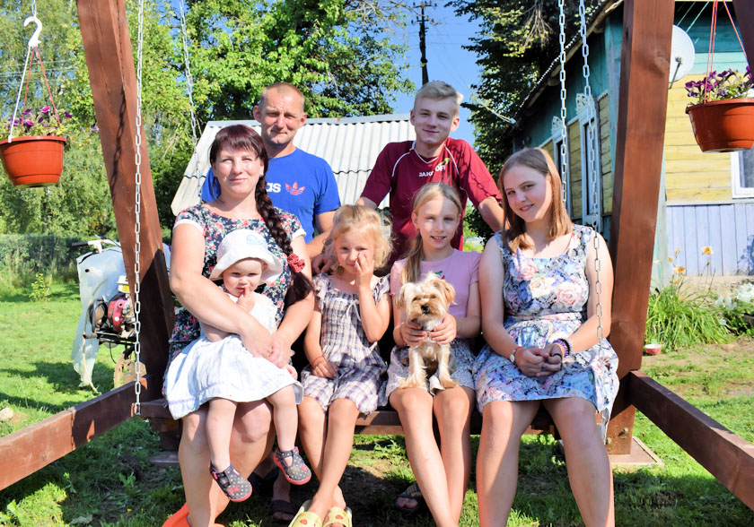 З адной зарплаты не пражывеш (Вольга ў мясцовым дзіцячым садзе працуе памочнікам выхавальніка, муж – качагарам – аўт.), таму трымаем вялікую падсобную гаспадарку: ёсць карова, свінні, куры, качкі, цесаркі, трусы, пчолы. Прадаём мяса і мёд. Ну, вядома ж, натуральнымі прадуктамі харчуецца ўся сям’я. На гаспадарцы працуюць разам з дзецьмі: сушаць сена, кормяць птушак, даглядаюць агароді збіраюць ураджай. Вольга і Віталь (родам з Улы і Мікіціхі адпаведна) прывычныя да вясковай работы.