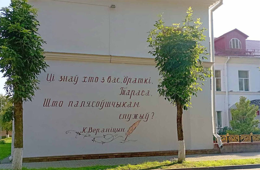 К Дню белорусской письменности в Городке на фасадах зданий стали появляться цитаты белорусских классиков