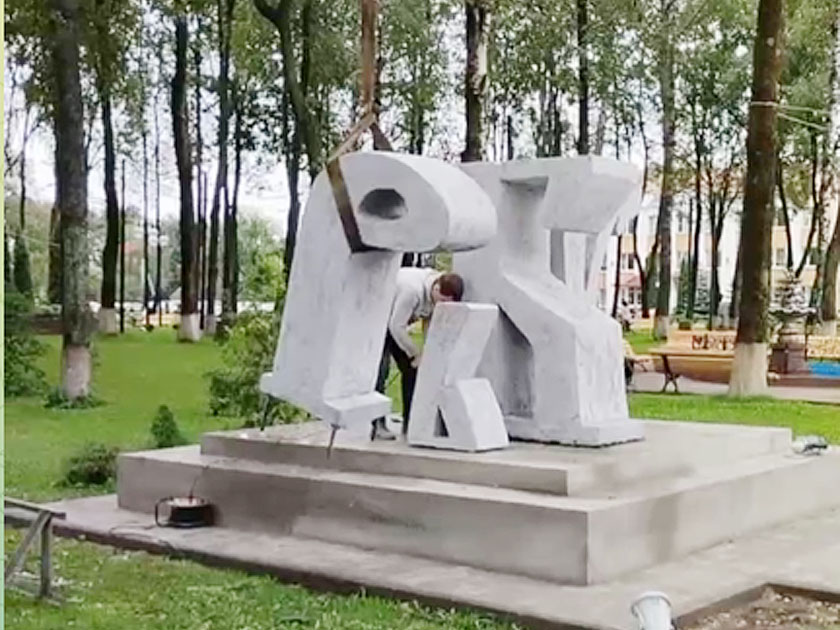 Сейчас здесь идет установка скульптуры, посвященной юбилейному Дню белорусской письменности.