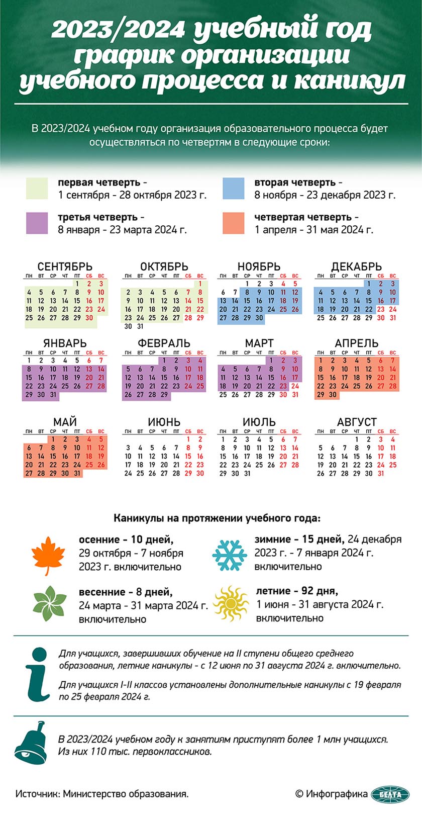 2023/2024 учебный год: график организации учебного процесса и каникул
