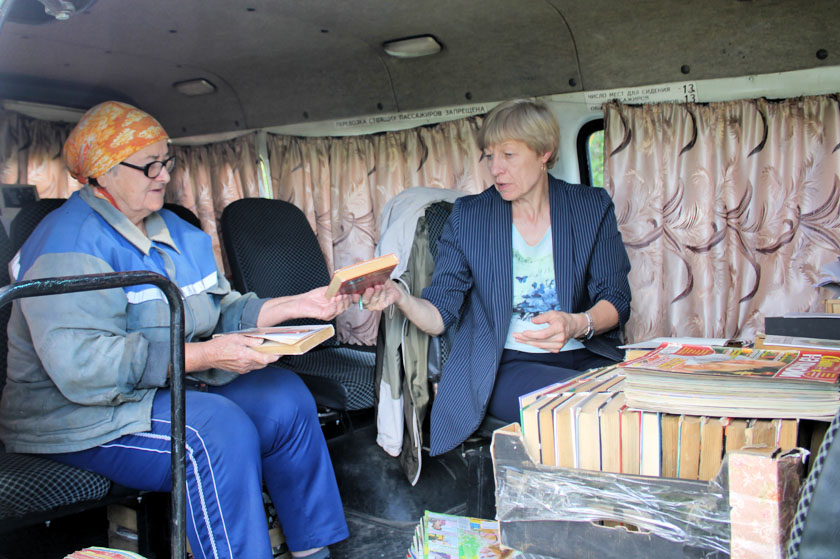 Чытачы здаюць кнігі, бяруць з запасам да наступнага прыезду бібліёбуса. Адна-часова вяскоўцы абменьваюцца мясцовымі навінамі, расказваюць пра грыбныя паходы, дзеляцца агароднымі поспехамі.