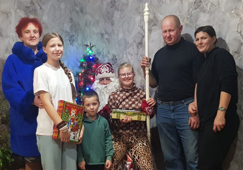 Напярэдадні навагодніх святаў і Каляд вясковых дзяцей, якія маюць праблемы са здароўем і бацькі якіх працуюць у сельгаспрадпрыемствах, павіншавалі старшыня райкама прафсаюза работнікаў АПК Вольга Пусянкова і галоўны Дзед Мароз раена Юрый Афанасьеў.