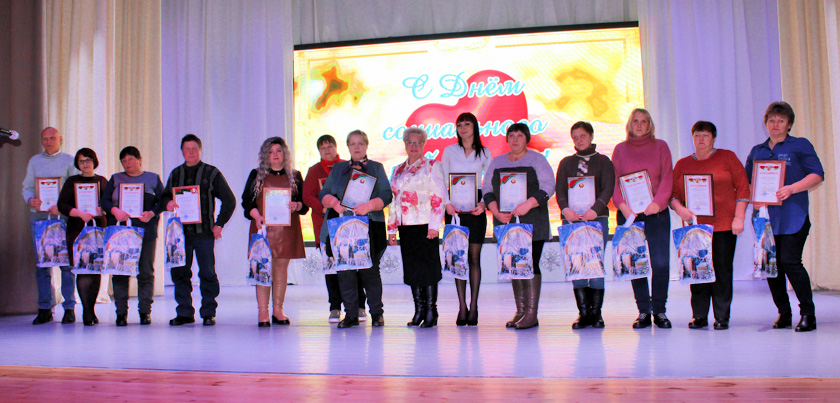 Да віншаванняў і ўзнагароджання далучылася начальнік упраўлення па працы, занятасці і сацыяльнай абароне райвыканкама Ларыса Жукава. Ганаровую грамату камітэта па працы, занятасці і сацыяльнай абароне Віцебскага аблвыканкама атры-мала сацыяльны работнік Валянціна Карапузава, Падзякі старшыні камітэта – сацыяльныя работнікі Алена Кандакова і Аксана Стоцік.