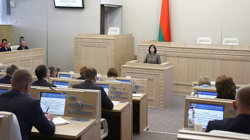 Спикер напомнила о том, что вчера Президент Беларуси Александр Лукашенко проводил заседание Совета безопасности, которое было посвящено рассмотрению двух важнейших документов стратегического планирования — проектов Концепции национальной безопасности и Военной доктрины Беларуси.