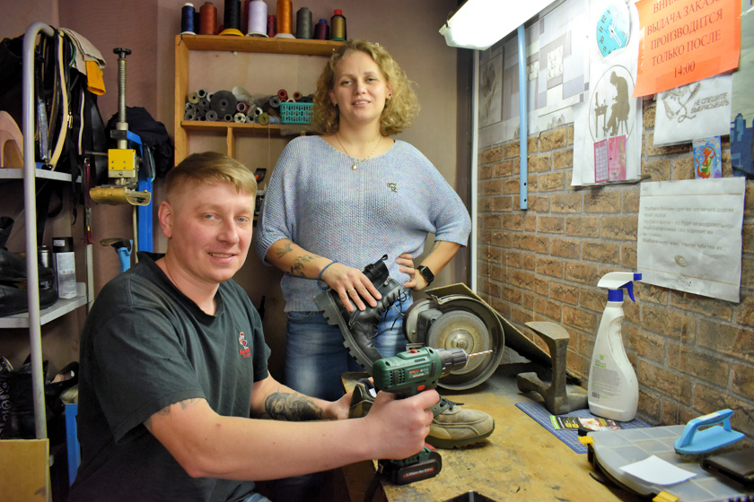 Асабліва многа заказаў зімой і позняй восенню. Людзі ўспамінаюць, што няма чаго абуць і бягуць да майстра. Яму прыходзіцца затрымлівацца на рабоце, працаваць і па выхадных. Тады на дапамогу прыходзіць жонка Любоў. Яна працуе медсястрой у Обальскай бальніцы, а ў вольны час – разам з мужам. Навучылася ў яго падшываць абутак, атрымліваецца нядрэнна.
