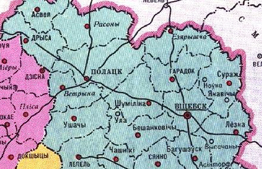 У 1796-1802 гадах намесніцтвы былі аб’яднаны ў Беларускую губерню. У 1802 годзе была створана Віцебская губерня. Тэрыторыя раёна была падзелена паміж Віцебскім (большая частка сучаснага Светласельскага сельсавета), Гарадоцкім (Мішневіцкі сельсавет) і Полацкім паветамі.
