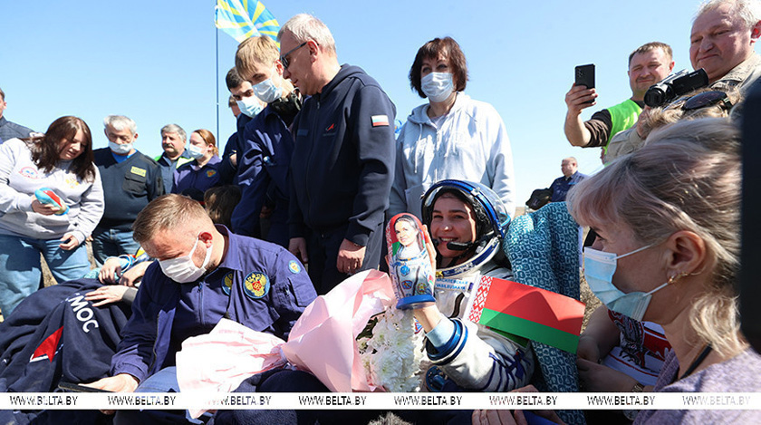 «Мы знали, что нас ждут на Земле, и это грело душу. Беларусь здесь, я очень рада. Можно было еще полетать пару неделек, но Земля ждет», — добавила первый космонавт Беларуси.