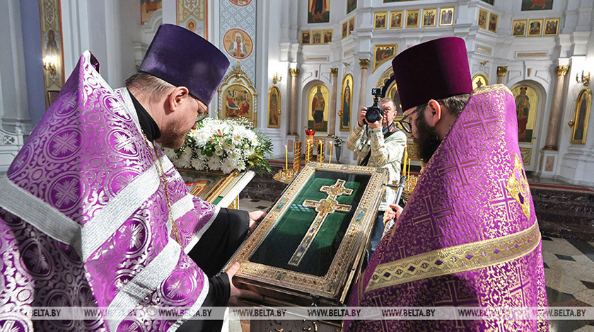 Крест пробудет в Витебске до 14 апреля. В Свято-Успенском кафедральном соборе до отбытия святыни будут читаться акафисты после утреннего и вечернего богослужений — в 12.00 и 15.00.