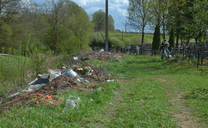 На зваротным шляху заехалі і на самыя вялікія могілкі – Крупчанскія. Нягледзячы на тое, што тут устаноўлены стацыянарныя кантэйнеры, па-ранейшаму знаходзіцца нямала аматараў выкінуць смецце літаральна пад ногі. Роў перад чыгункай, як заўжды, засмечаны…