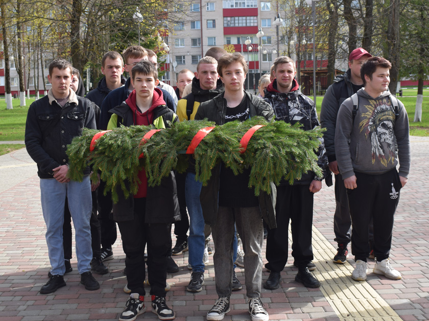 Будучыя салдаты ўсклалі квет-кі на брацкія могілкі і да помніка ў Скверы воінскай славы, ушанавалі памяць загінуўшых хвілінай маўчання. З наказам звярнуўся былы афганец старшыня раённай арганізацыі ГА «Беларускі саюз ветэранаў вайны ў Афганістане» Васіль Карпушэнка. Моцная армія – залог бяспекі нашай краіны, таму трэба не баяцца цяжкасцей, смела авалодваць новымі спецыяльнасцямі і быць дастойнымі пераемнікамі сваіх дзядоў і прадзедаў, адзначыў Васіль Мікалаевіч.