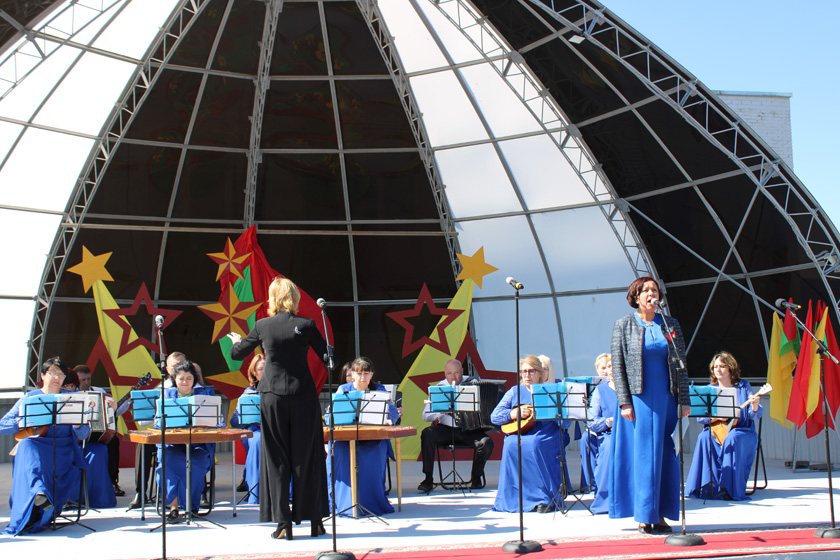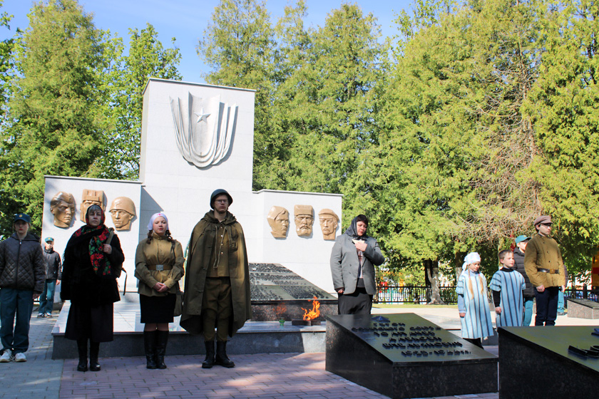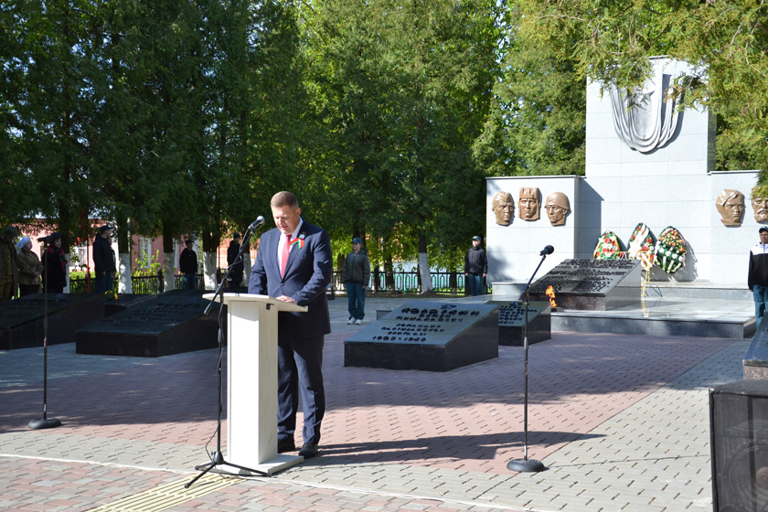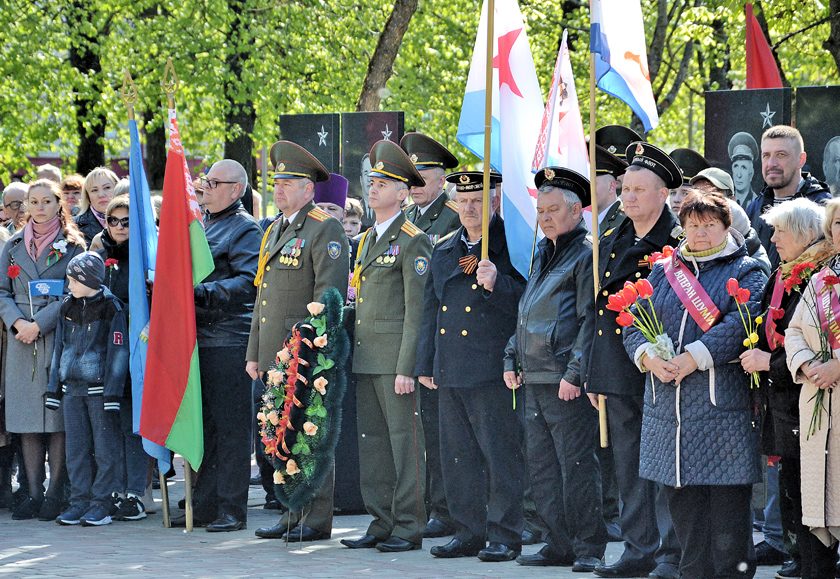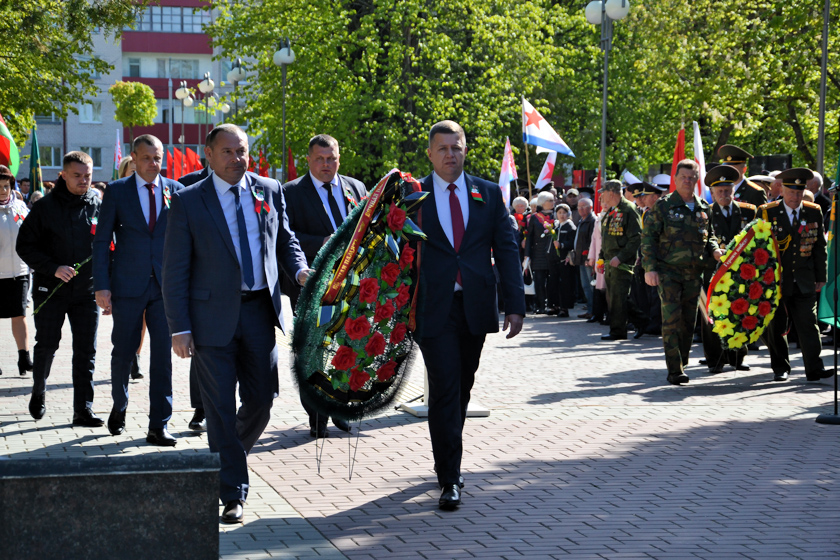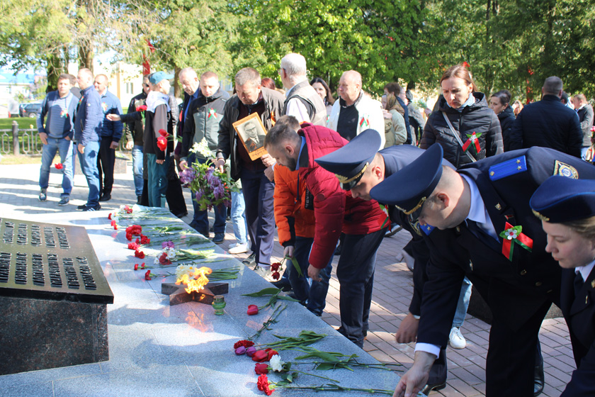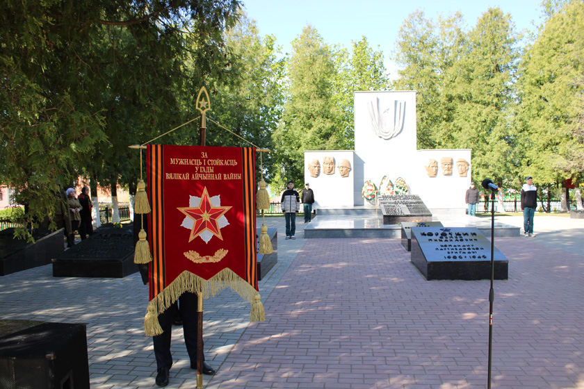 На воинском захоронении в городском парке прошёл митинг «Великая поступь Победы». на митинге выступили председатель райисполкома Сергей Галынчик и председатель районной организации ветеранов Татьяна Церах.