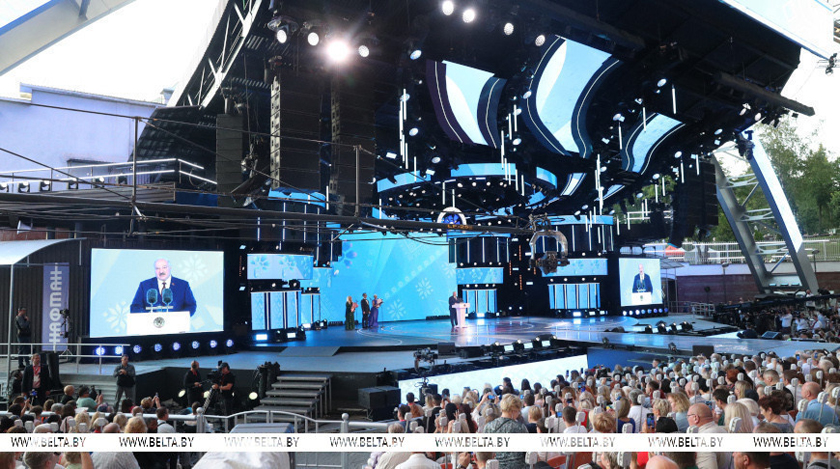 Он высказал слова благодарности в адрес организаторов форума, артистов, мастеров искусств и всем, кто ежегодно приезжает в Беларусь, чтобы провести здесь лучшие дни фестивального лета. «Благодаря вам история «Славянского базара в Витебске» продолжается и будет продолжаться и после нас. Вместе с нашими детьми и внуками», — подчеркнул Президент.