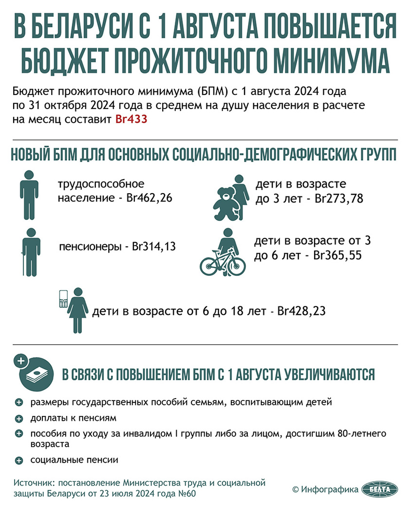 В Беларуси с 1 августа повышается бюджет прожиточного минимума